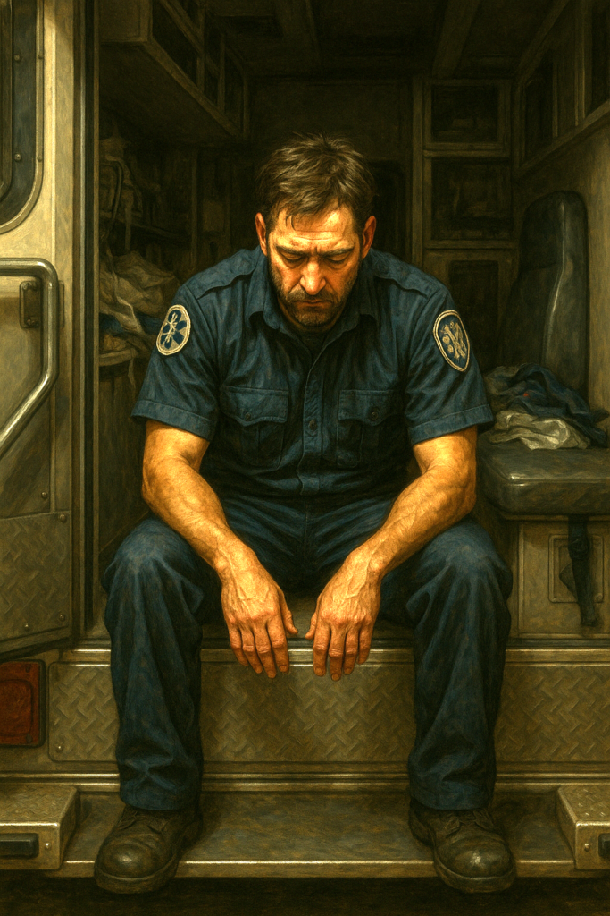 The moment when the call is over, the adrenaline fades, and all that’s left is your heartbeat echoing in your ears as you sit in the rig or stare at the ceiling of a station that suddenly feels too quiet. It’s the kind of silence that sinks into your bones. It lives there, long after the lights go out.